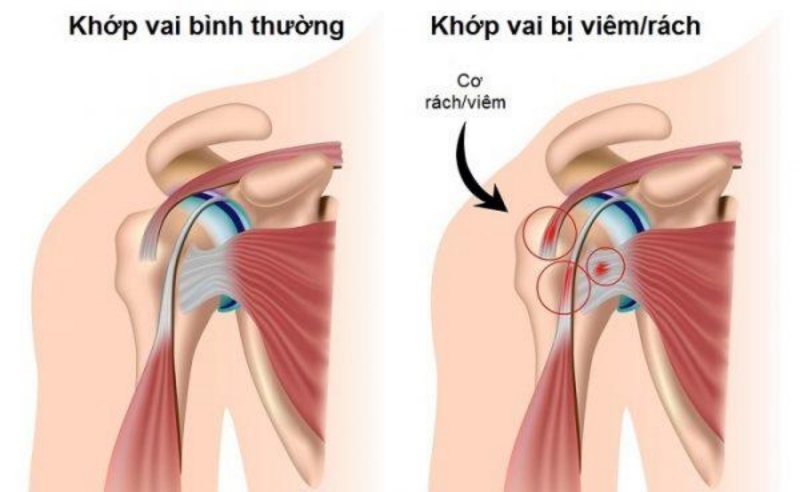 - Viêm gân chóp xoay khớp vai với triệu chứng vai bị viêm sưng, đau nhức và khó cử động.